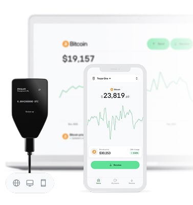Trezor Safe 5、Trezor Safe 3、Trezor Model T 和 Trezor Model One → 完全兼容 Android。与 iOS 兼容性有限(支持投资组合跟踪、购买和接收资产)。要签署其他交易,需要使用 Trezor Suite 桌面版。